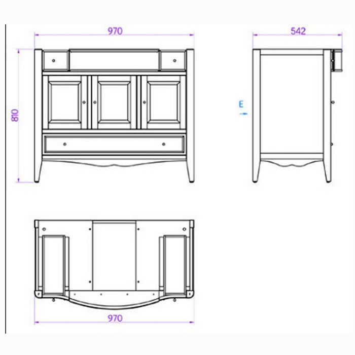 —TW Veronica, База с раковиной Simas AR874bi*1 105*56см, 2 верх.ящ. 3 расп. дв. и 1 выдв. ящик, доводч. Blum, ручки: Riflesso бронза, цвет: GRIGIO