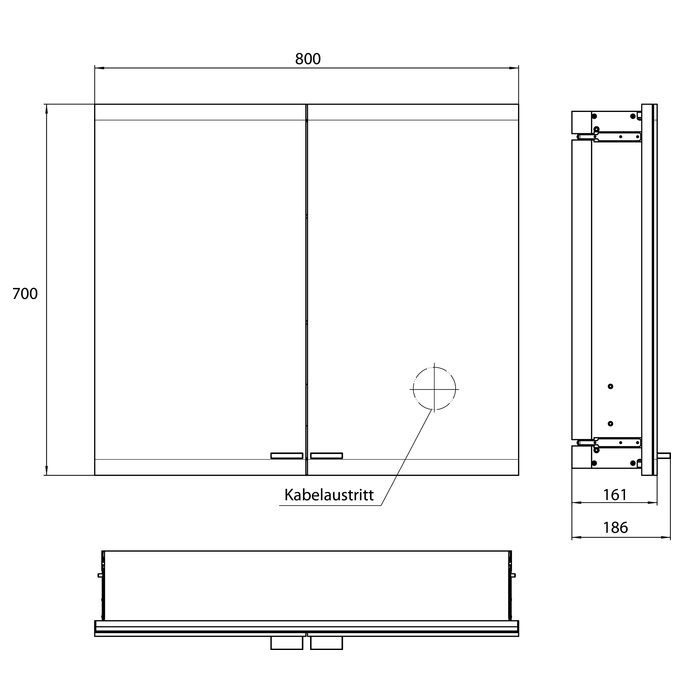 EMCO Evo Зеркальный шкаф 80xh70см с подсветкой, встраиваемый, 2 двери, 2 полки, розетка, цвет: алюминий