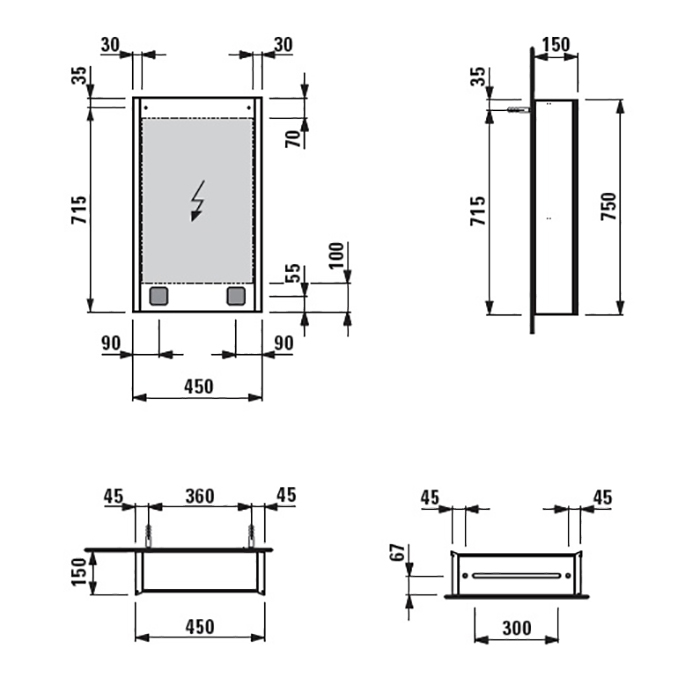 LAUFEN Frame 25 зеркальный шкафчик, алюминий, 1 двуств. зерк. дверь, с 2 свет. освет. Элем., с евророз., с сенс. Выкл., правост..я дверь, зеркальный