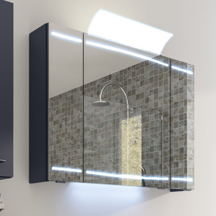 Pelipal Cassca Зерк-шкаф 100х70х17см., ComfortN, включ. подсвет,3 зерк.дверцы, 6 стекл.полок, розетка и выключатель, цвет: стальной серый