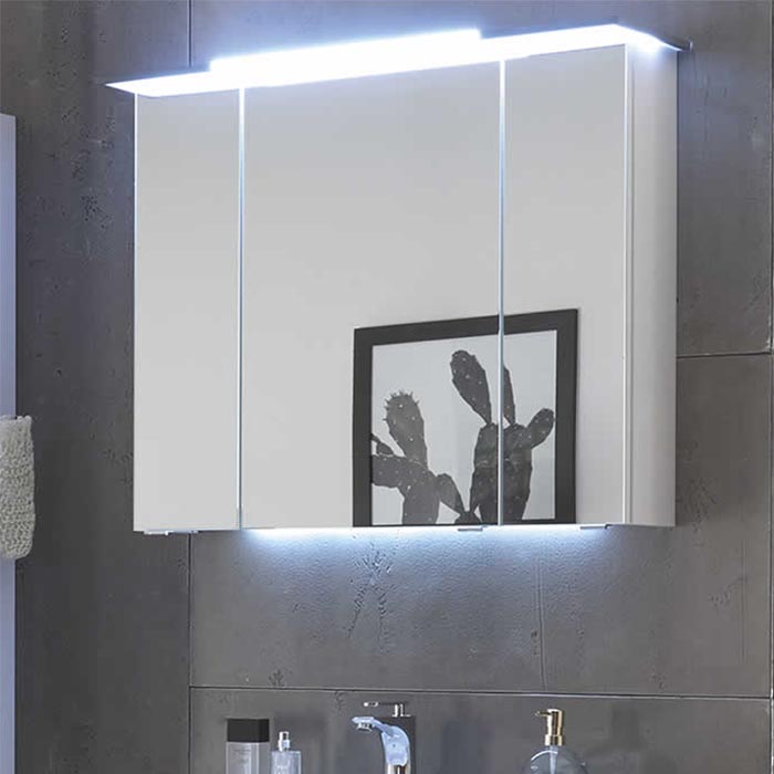 Pelipal Solitaire 9025 Зеркальный шкаф 71х85х17см.,, вкл. подсв. в дверцах, 3 дв., с одн. стороны зерк., 6 ст. полок, выкл/розетка, цвет: белый глянц.25