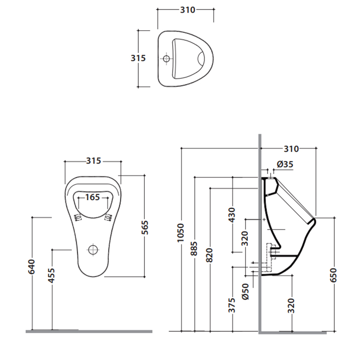 Подвесные писсуарыCкрытое подключениеС автоматическим смывом