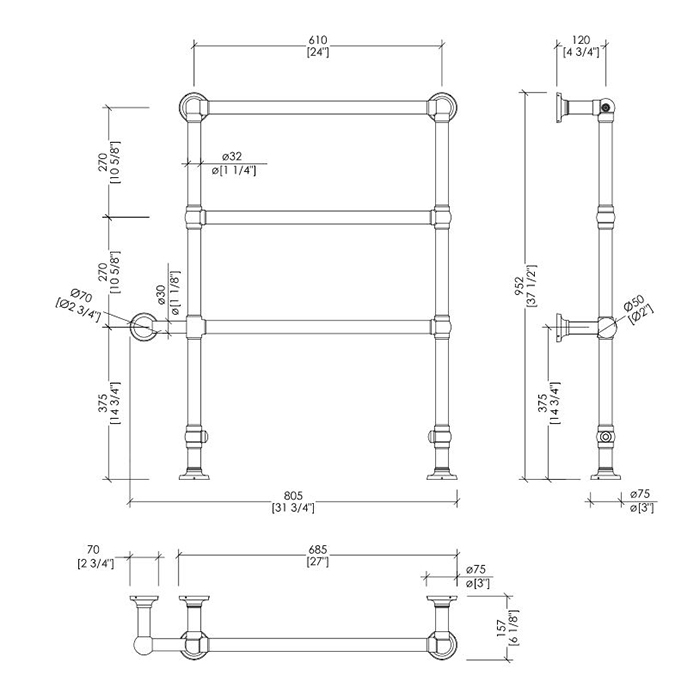 —Devon&Devon Baccus 4 Полотенцесушитель электрический 80.5х95.2x15.7см, скрытое подключение SX, цвет: светлое золото