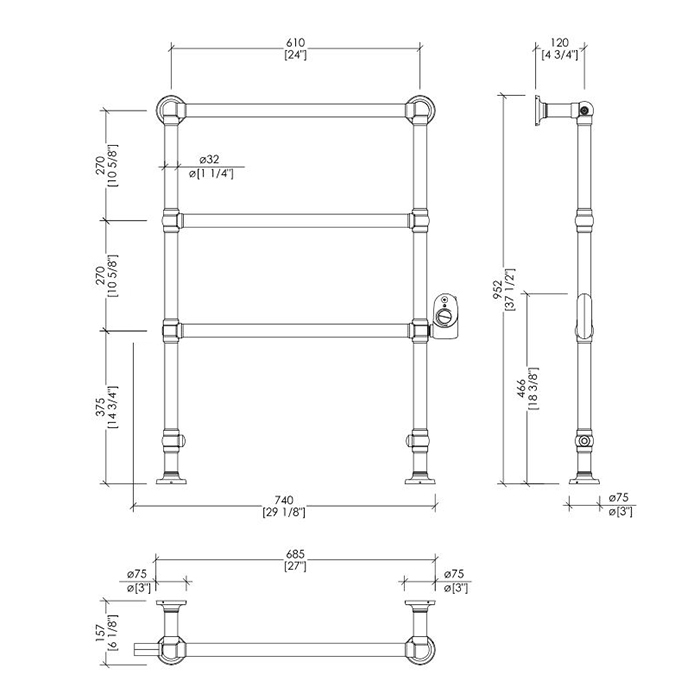 DEVON&DEVON BACCUS 4 Полотенцесушитель электрический 740х952x157 мм., термостат (хром) справа, цвет хром