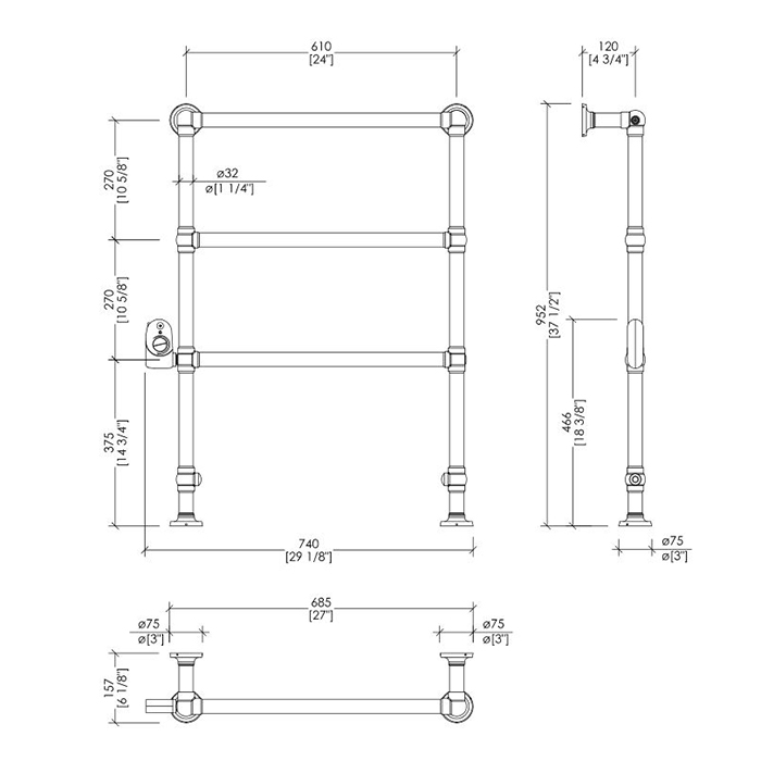 —Devon&Devon Baccus 4 Полотенцесушитель электрический 74х95.2x15.7см, термостат белый, подключение SX, цвет: светлое золото