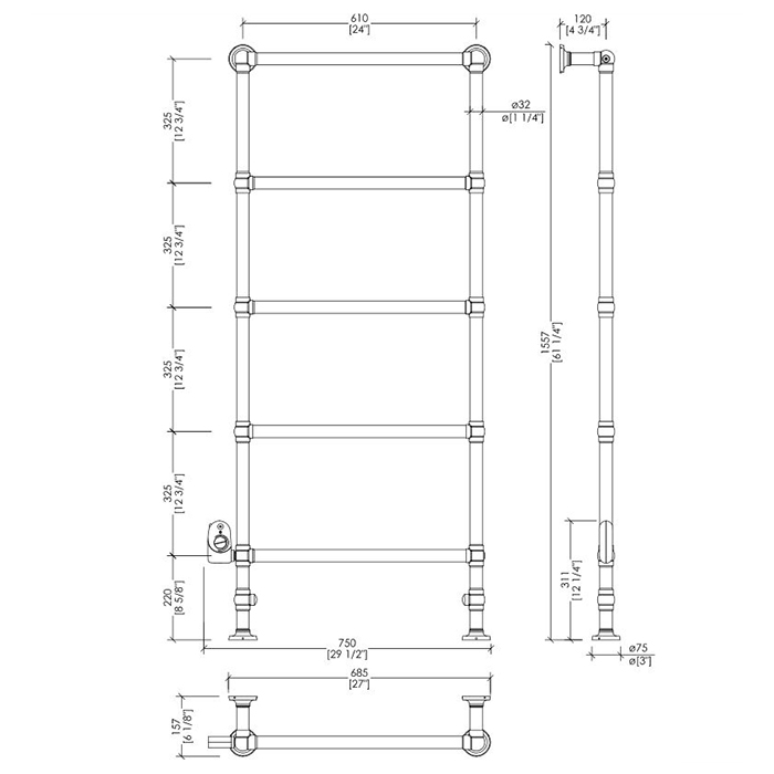 Devon Baccus 7 Полотенцесушитель электрический напольный 75х15,7хh155.7 см, цвет: золото, термостат цвет белый - смонтирован слева SX