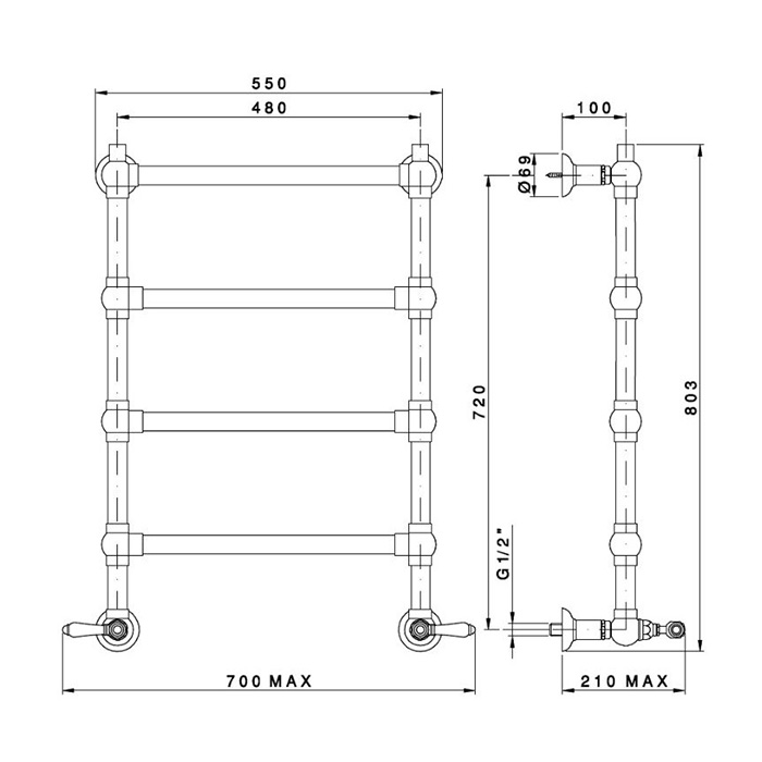 NICOLAZZI EL CAPITAN Полотенцесушитель водяной 55(70)х80.3см., цвет: черный матовый