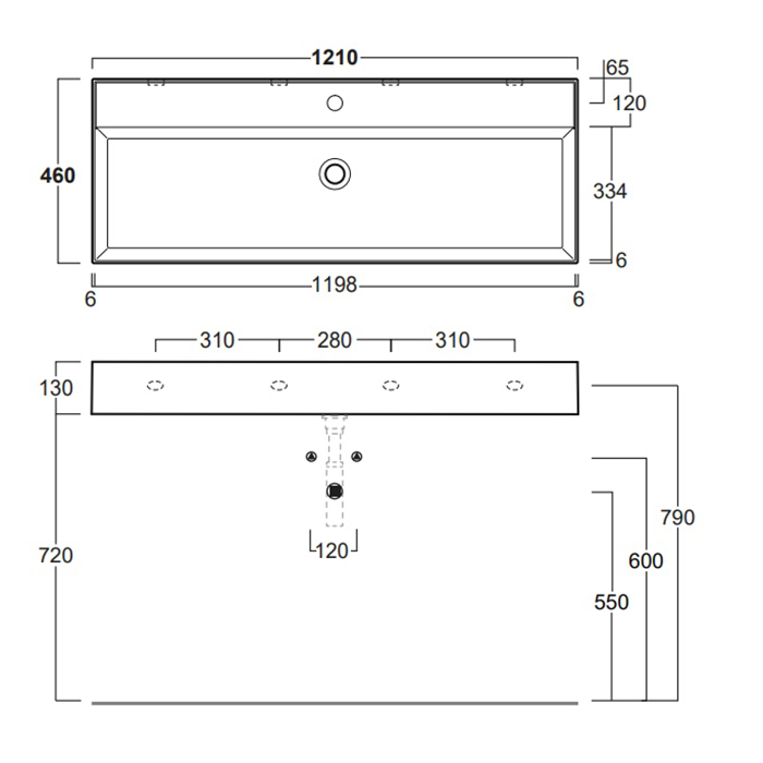 SIMAS AGILE Раковина двойная подвесная 121х46 см, с переливом, с 2 отв под смеситель,цвет белый
