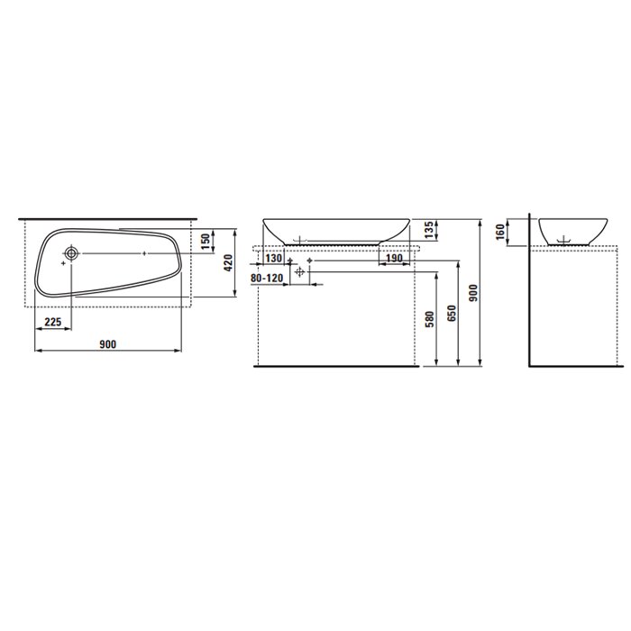 —Laufen Palomba Раковина-чаша 90х42х16 см, без отв., цвет: белый