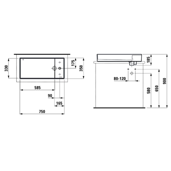 Laufen Kartell Раковина-чаша 750х350х120мм без перелива, без отв. под смеситель, со скр. сливом, цвет: белый