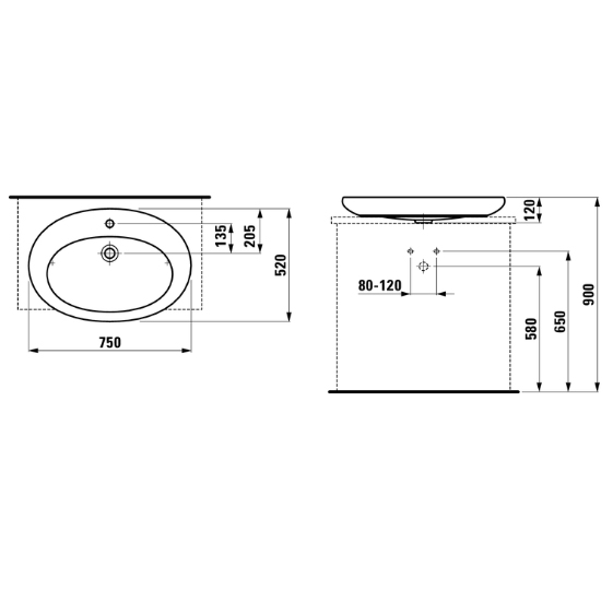 Laufen Alessi One Раковина полувстраиваемая 750х520х90мм без отв., без перелива, с покр. LLC, цвет: белый