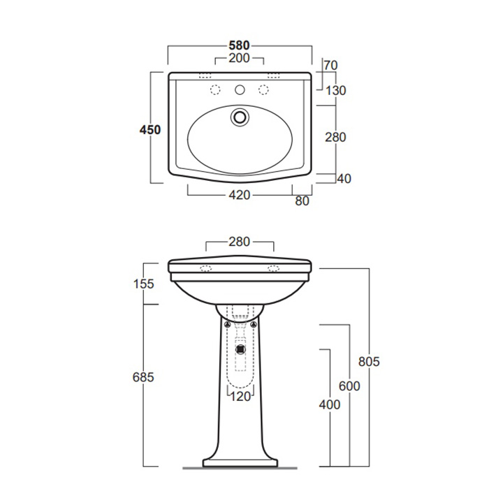 SIMAS Londra Раковина 58х45 см, 1 отв., цвет: белый