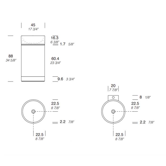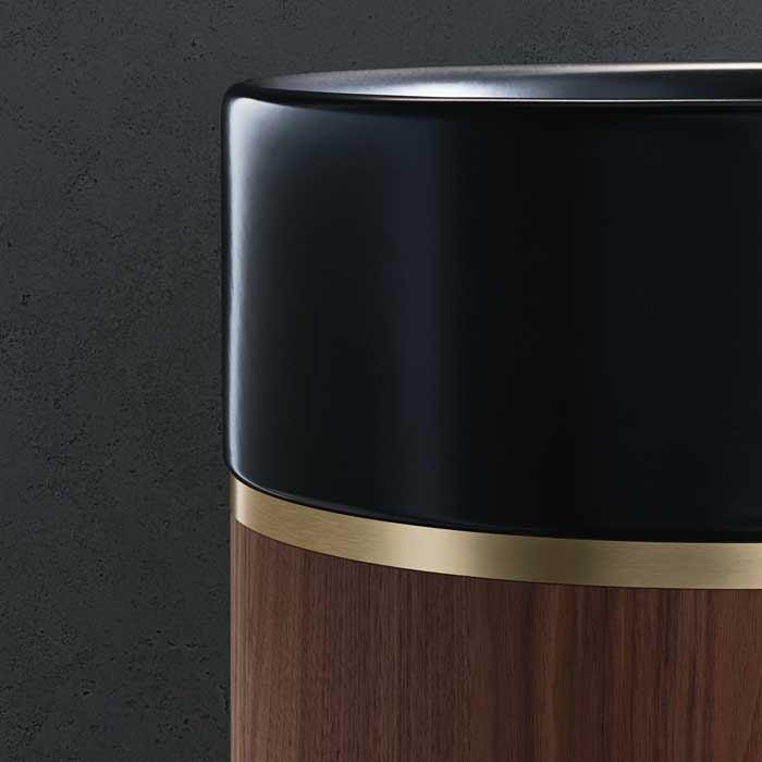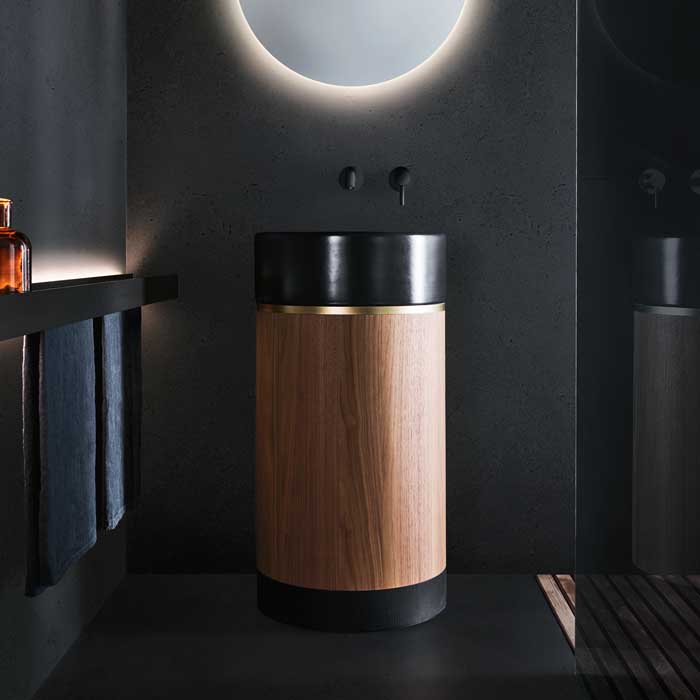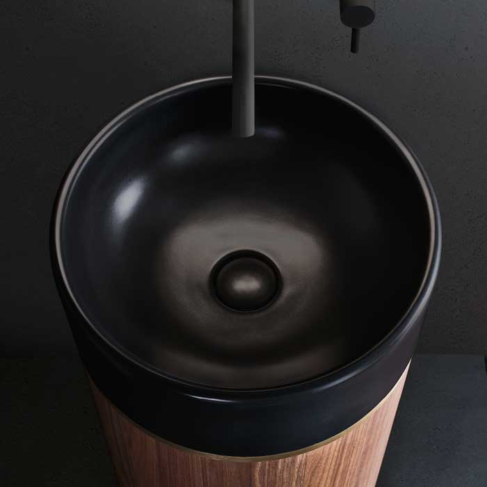 NOORTH milldue edition ROMA II Раковина напольная Ø450x880 мм., слив в пол, основ Rovere Nero, корпус Noce Canaletto, вставка Oro, раковина Nero opaco