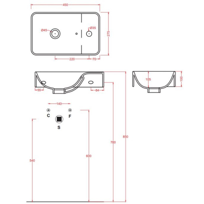 Artceram LAVAMANI SAVON  Раковина подвесная 27х45 см, с 1 отв под смеситель, со слив переливом, цвет белый.