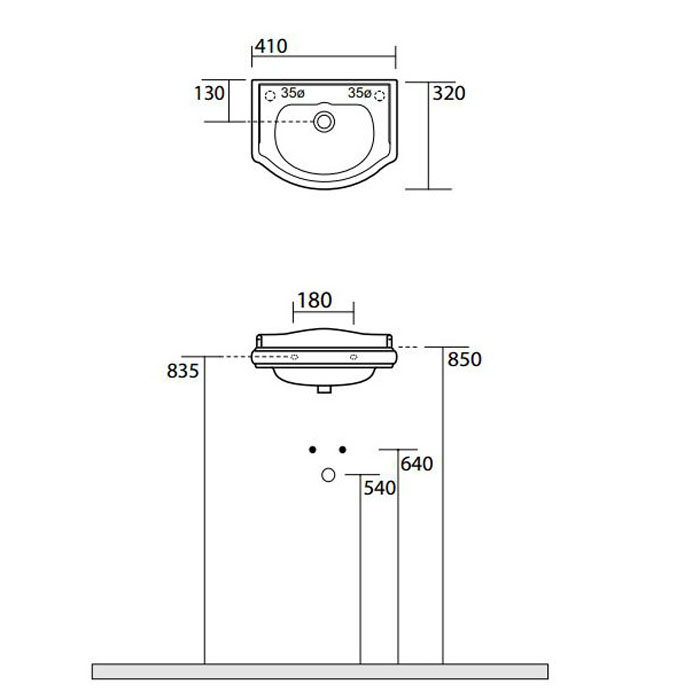 KERASAN Retro Раковина 410х320мм c 1 отв.выбитым вручную под смеситель справа (DX), цвет белый