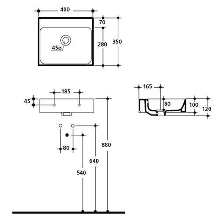 KERASAN Cento раковина 40х35 подвесная без отв. под смеситель, белая (не производится с 01/01/2022!)