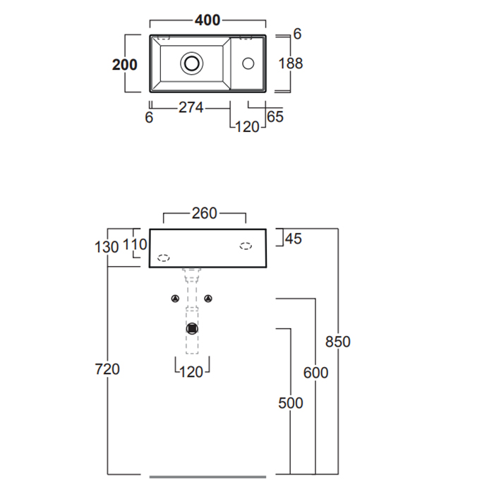 SIMAS AGILE Раковина подвесная 40х20 см, правая , с 1 отв под смеситель,цвет NERO MATT