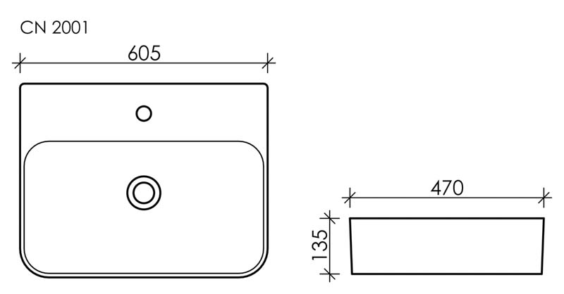 Умывальник AURA с 1 отверстием для смесителя, без перелива 600*470*135мм