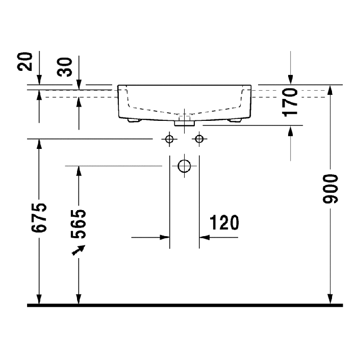 Duravit Vero Раковина  встр. до половины с перел., с 1 отв. под смес., включая крепление для встраивания в деревянную столешницу, 550x470, Цвет: Белый