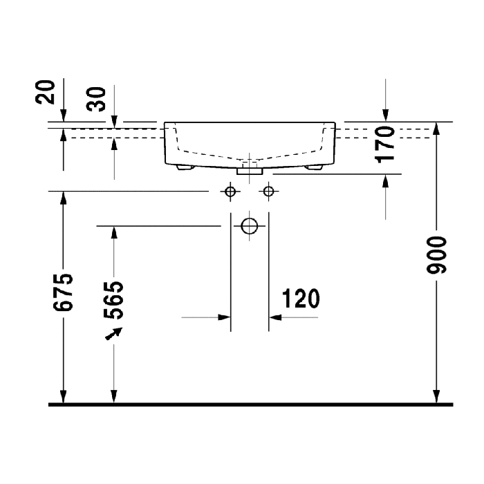 Duravit Vero Раковина  встр. до половины с перел., без отв. под смес., включая крепление для встраивания в деревянную столешницу, 550x470, Цвет: Белый