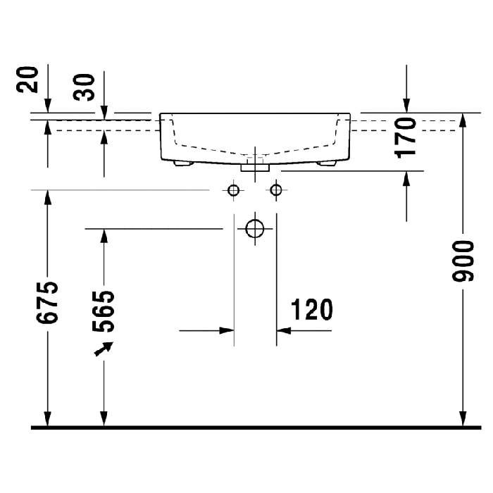 Duravit Vero Раковина  встр. до половины с перел., с 3 отв. под смес., включая крепление для встраивания в деревянную столешницу, 550x470, Цвет: Белый