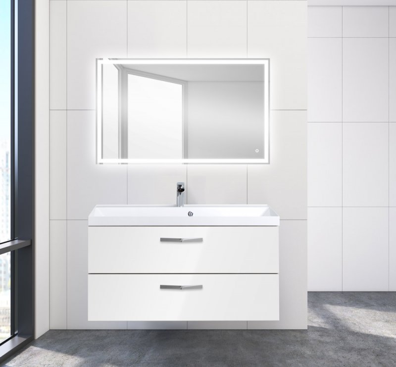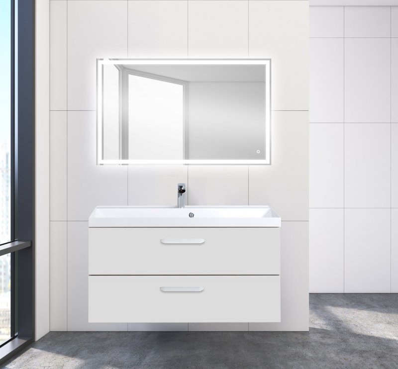 На фото мебель в цвете Bianco Opaco+ ручки AURORA-MANIGLIA-1000-RG