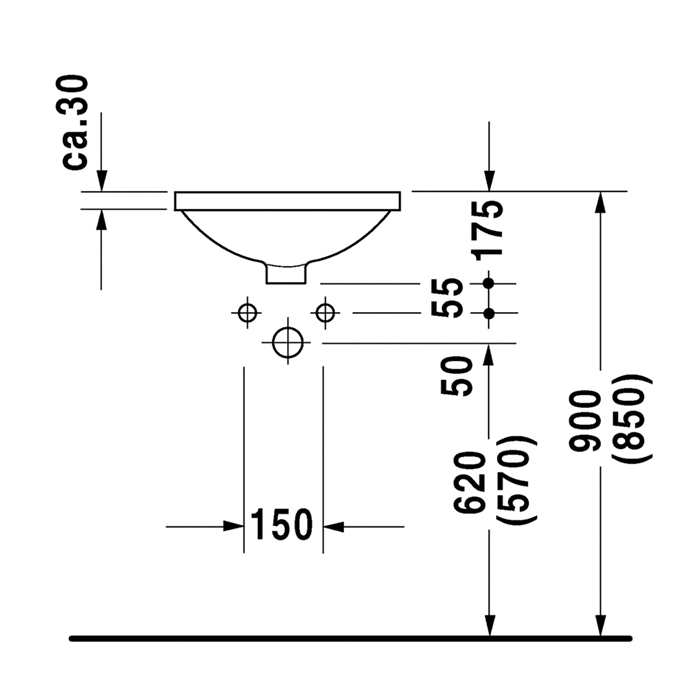 Duravit Architec Раковина  встр., для встраивания снизу, с перел., без площадки под смес., глазуровка снизу,включая крепление под столешницу, Ø 400мм,
