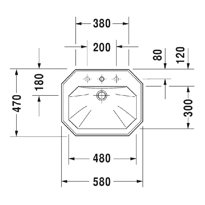Duravit 1930 Раковина для встраивания сверху, с перел., и 1 отв. под смес., 58х47х Н:22.5см