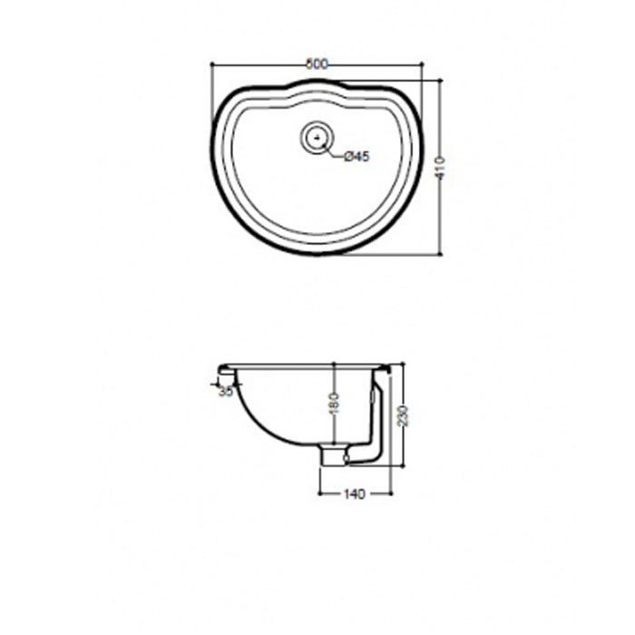 KERASAN Retro Раковина  встраиваемая 50х41см, с переливом, цвет белый