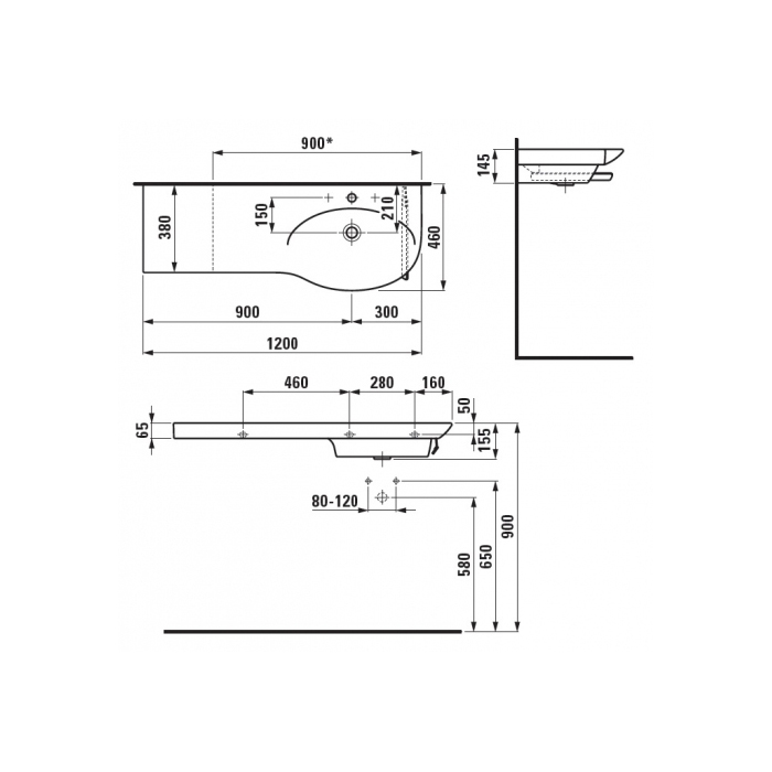 LAUFEN PALACE Раковина 1200х460х65 мм., столешница слева, с 1 отверстием для смесителя, с переливом, цвет белый