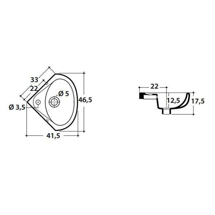 GLOBO Lavabi d'arr Раковина угловая TORANO 50*40*19м, с 1 отв под смеситель ,с переливом, цвет белый