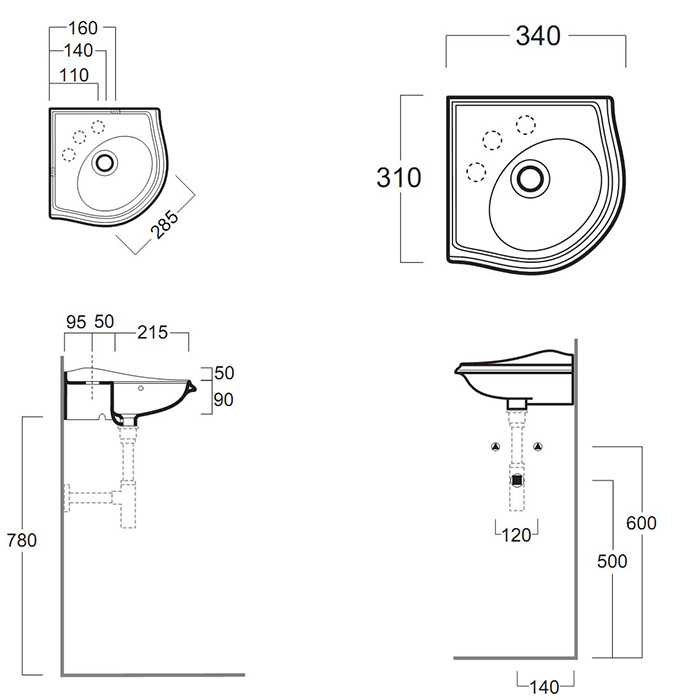 SIMAS Arcade Раковина  угловая 34x34см с 1 отв. под смесит., пробитым вручную, цвет белый