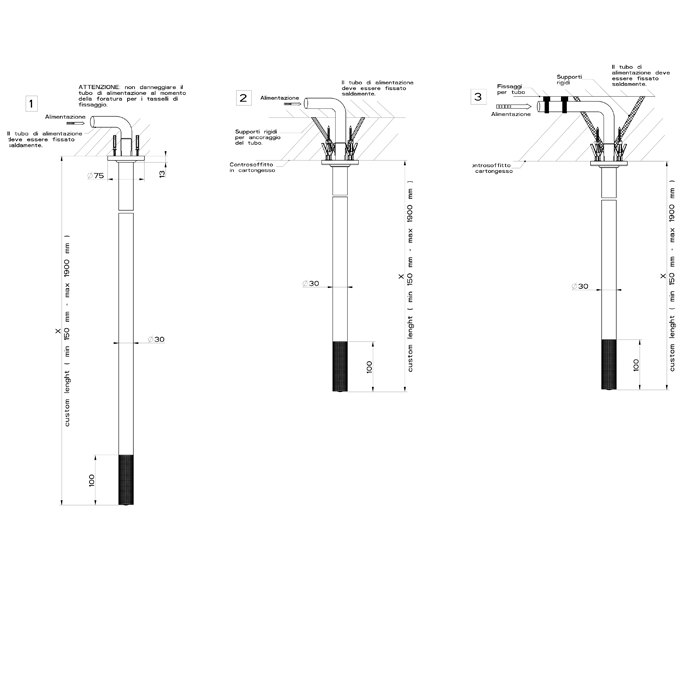 —Gessi Inciso Излив потолочный для удаленного управления, длина под заказ(150-1900мм), цвет: finox