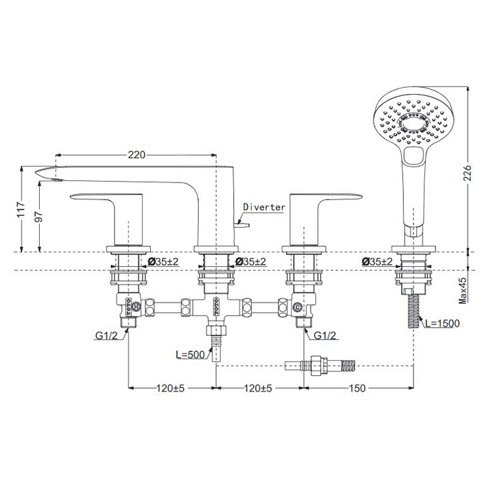 • Смесители для ванны с душем