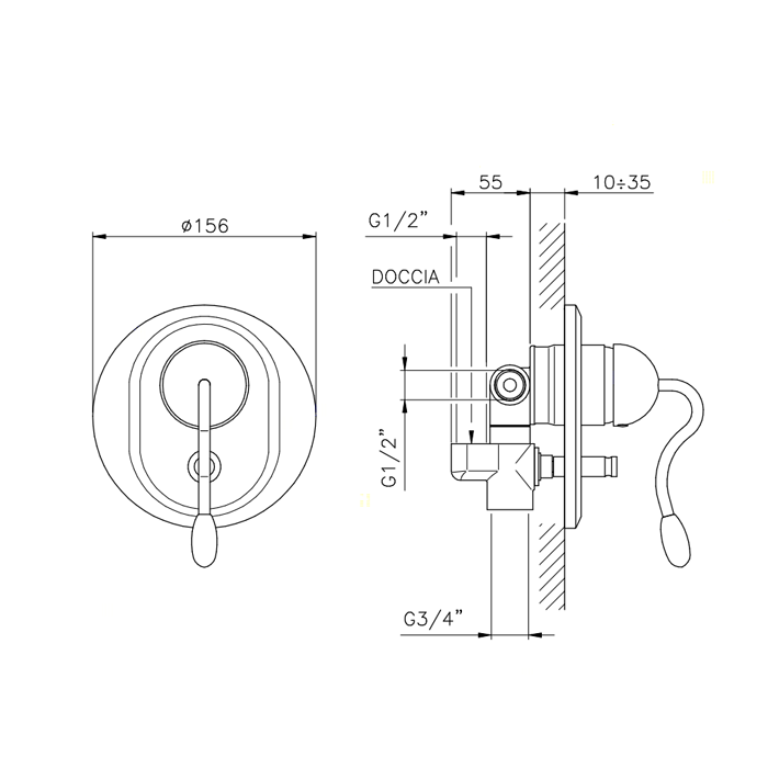 Nicolazzi Unico Встраиваемая часть для душа с переключателем, подключение смешанной воды 1/2" и 3/4"