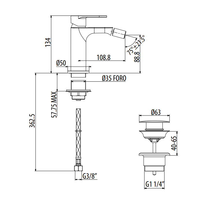 Gattoni H2Omix7000 Смеситель для биде, на 1 отв., с донным клапаном, излив 108,8 мм, цвет: хром