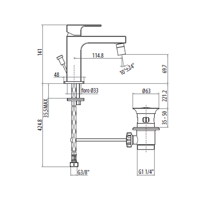 —GATTONI Kubik Смеситель для биде с донным клапаном, цвет хром