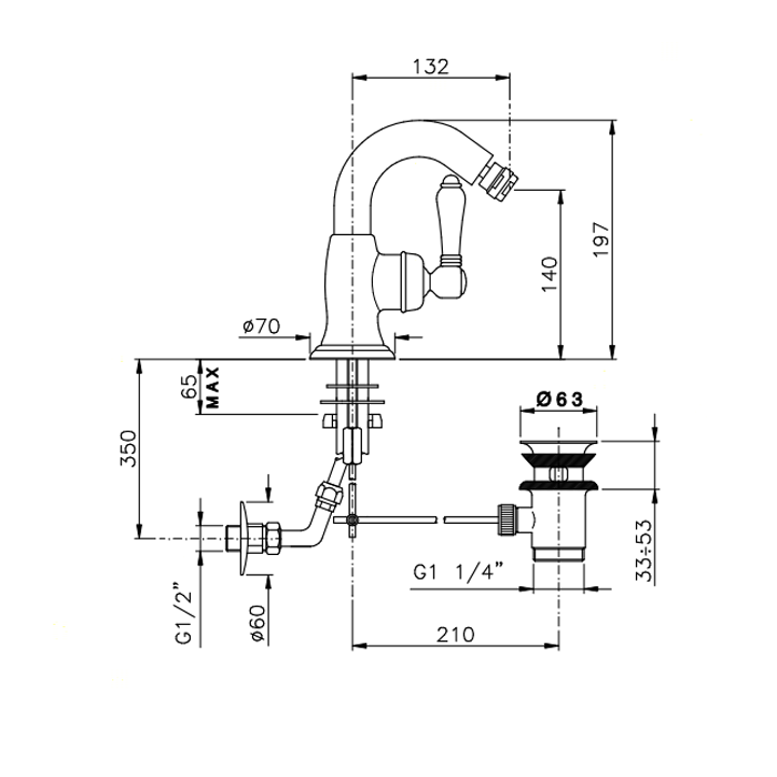Nicolazzi P.m. Blanc Смеситель для биде, на 1 отв, с донным клапаном, излив: 132 мм, ручки белая керамика, цвет: хром