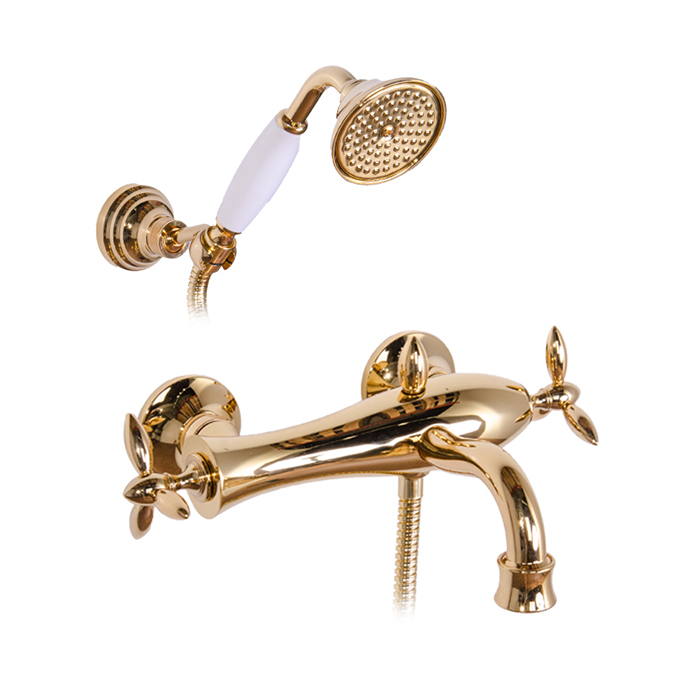Gattoni Timor Смеситель для ванны с лейкой и шлангом, цвет золото 24кт  (спеццена - только на остатки со склада!)