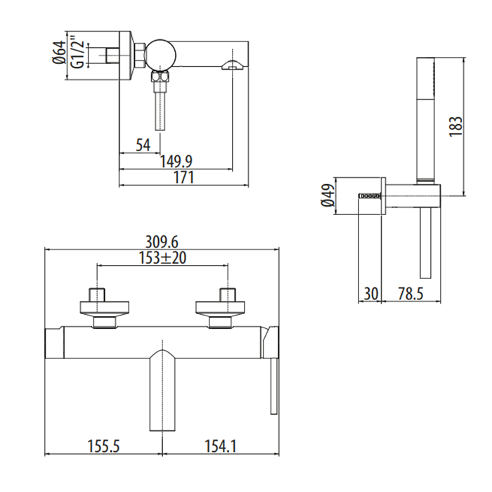 • Смесители для ванны с душем