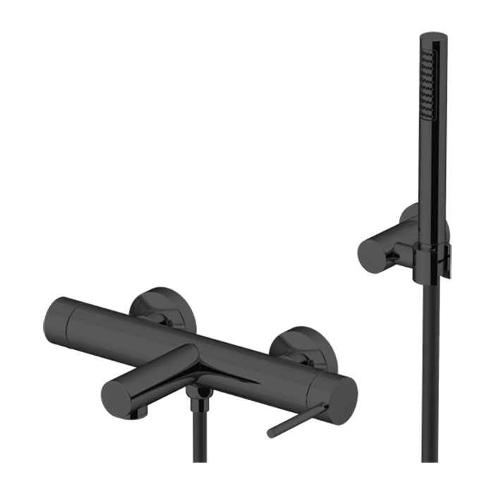 Gattoni Circle One Смеситель настенный для ванны, с ручной лейкой на держателе. цвет: черный матовый