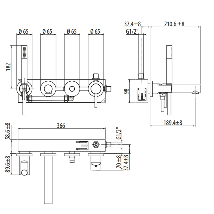 —Gattoni Circle One Смеситель для ванны, встраиваемый, на 4 отв., с внутр. частью, с ручной лейкой, цвет: хром