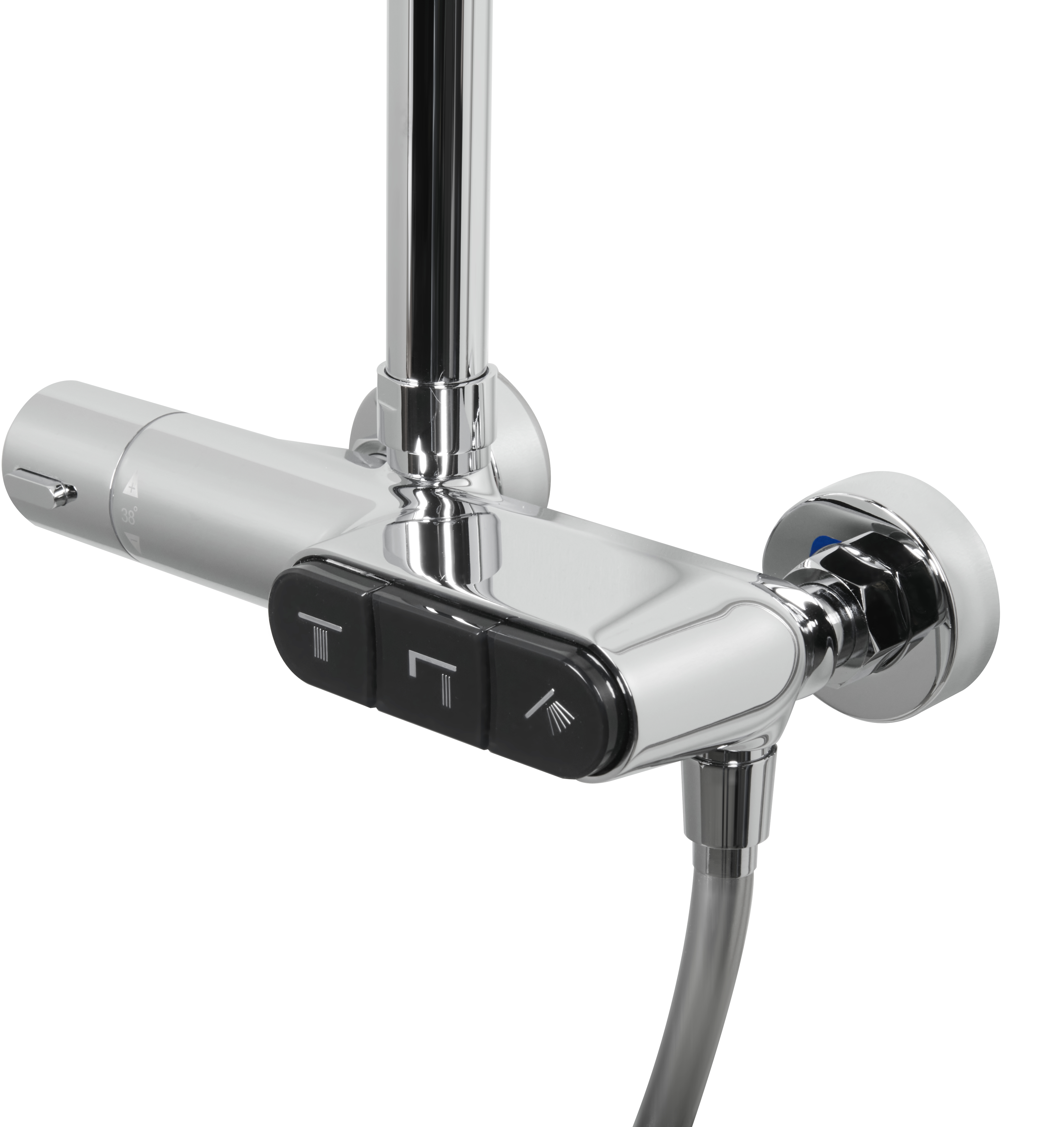 каскад, верхний душ ø250 мм, ручной душ ø110 мм 3 режима, душевой шланг 1500 мм ПВХ, регулируемый держатель ручного душа для душевой колонны |