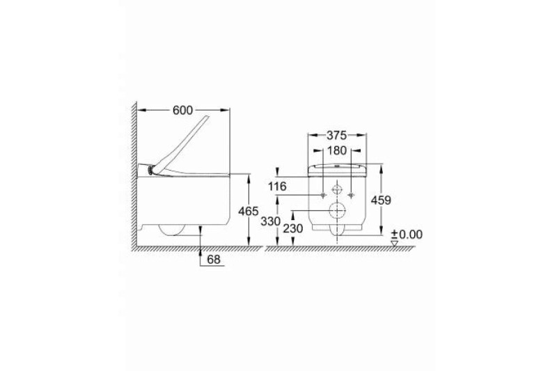 Размеры унитаза, мм В х Ш х Г