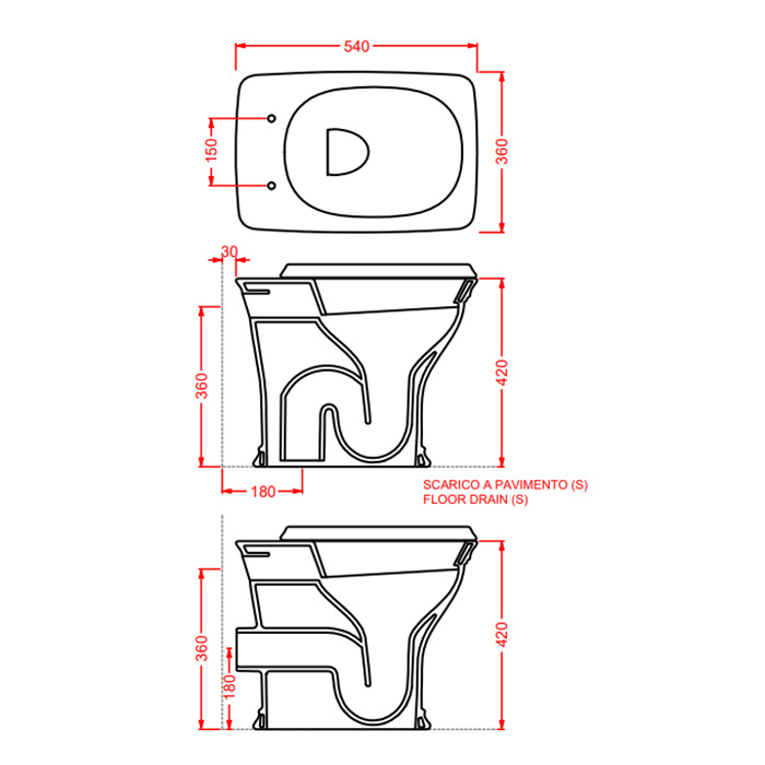 Artceram CIVITAS  Унитаз напольный 36х54 см, слив в стену, цвет белый (крепится на силикон)