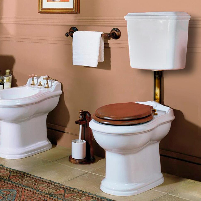 —AZZURRA JUBILAEUM унитаз напольный 59х40см, слив в стену, с бачком, средним трубой и белым сиденьем, фурнитура бронза