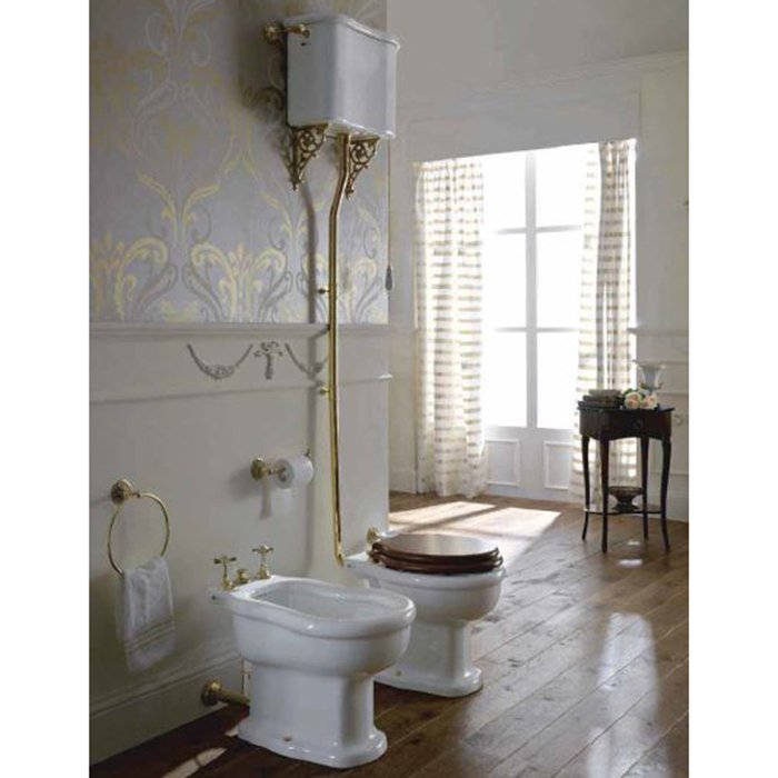 —Sbordoni Palladio Унитаз 43х36см, с высоким бачком, слив в стену, фурнитура: мат. бронза, цвет: белый