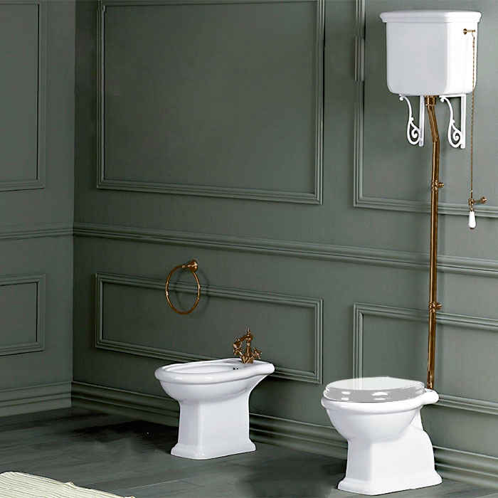 —SIMAS Lante Унитаз напольный, выпуск в стену, 38,5х58см, с высоким бачком, с фурнитурой, цвет: белый/бронза, СИДЕНЬЕ НА ВЫБОР