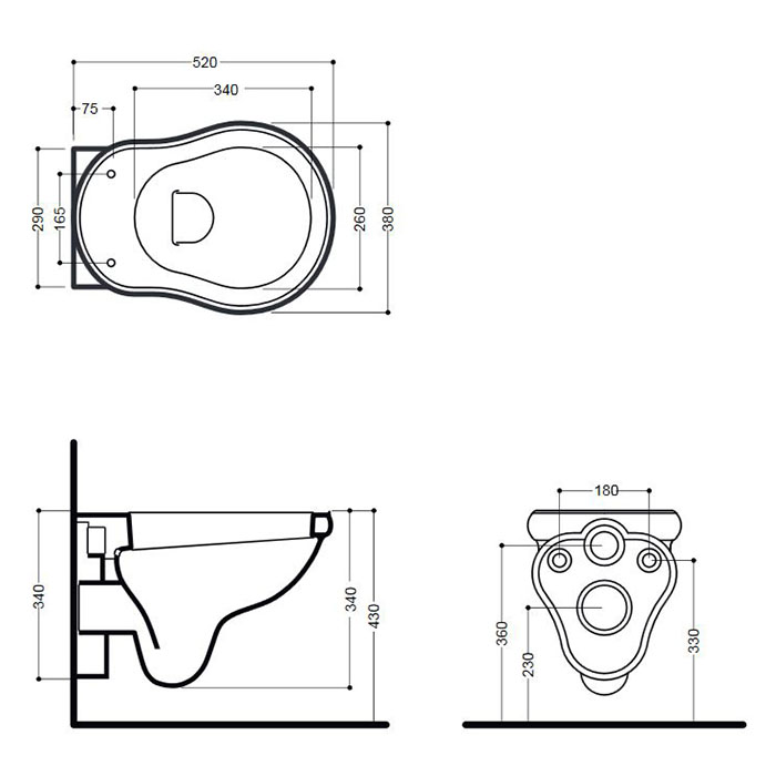 KERASAN Retro Унитаз подвесной 52*38см, цвет белый