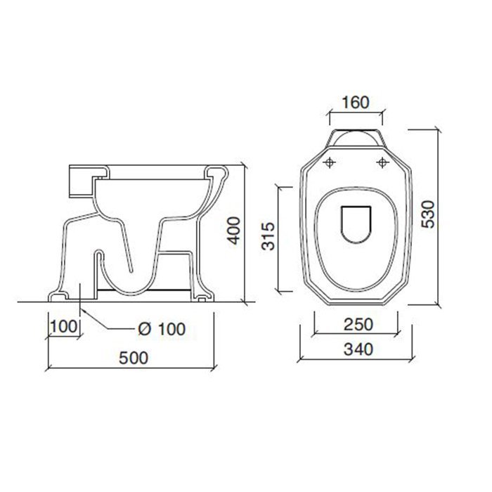 Sbordoni Romana Унитаз 53х34см, с высокой трубой, цвет: белый/хром